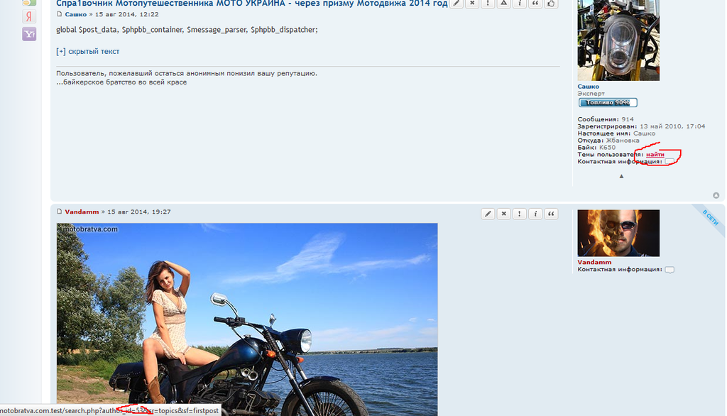 через html-шаблон я формировал адрес с помощью {postrow.POSTER_ID}, но тогда ссылка не будет работать для подфорумов и еще непонятно когда может не работать.