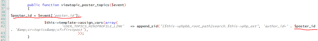 $poster_id = $row['user_id'];[phpBB Debug] PHP Notice: in file [ROOT]/ext/alecto/UserTopics/event/listener.php on line 39: Undefined variable: row