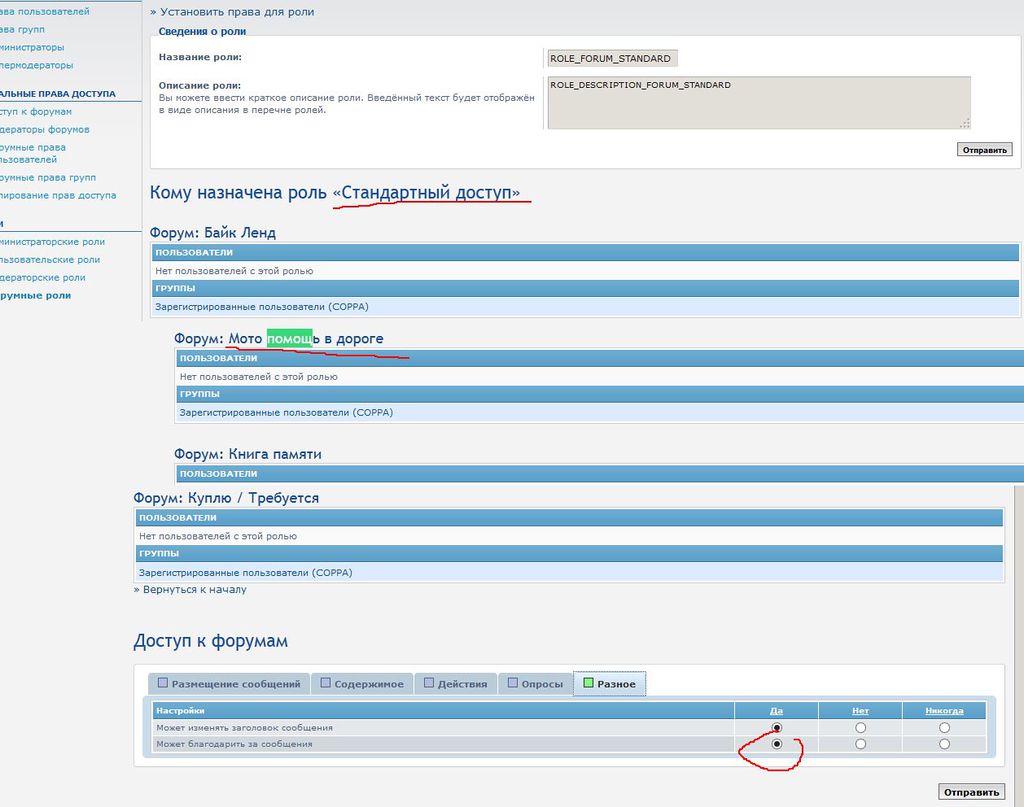 дело в том, что не для всех форумов выставляются одинаковые (стандартные) права.Татьяна5 писал(а):QR_BBPOST задать права зарегистрированным ролью.