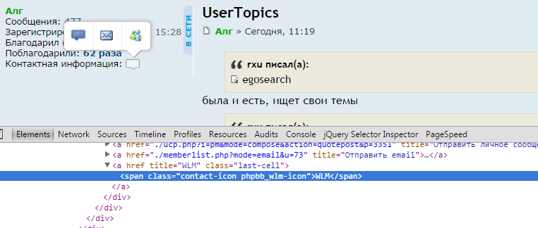 если в свой профиль добавить WLM (Windows Live Messenger), то иконку в контактной информации в минипрофиле мы получим, но линк на эту кнопку пустой
